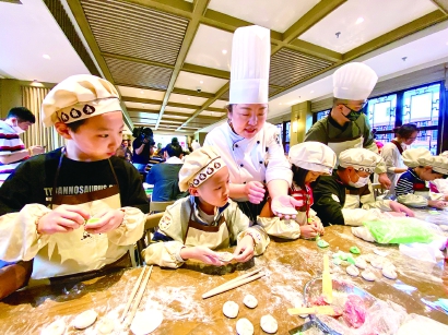 今天上午,120组家庭齐聚豫园,共同参与由百年老字号南翔馒头店主办的“上海小吃节暨南翔馒头店120周年小当家特别活动”。戴上迷你厨师帽,穿上小围裙,在南翔馒头店的第六代非遗传承人游玉敏的带领下,孩子们亲身体验了非物质文化遗产——南翔小笼包捏技艺,感受传统文化和传统美食的魅力。首席记者刘歆摄影报道