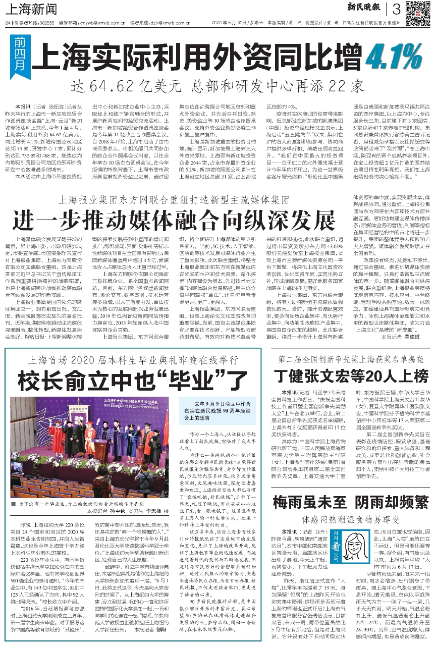 疫情对实体商业的经营带来影响,但总部设在新加坡的凯德集团(中国)投资总经理杨文正表示,上海启动“五五购物节”以来,集团在沪的各大商厦都积极参与,协同商户提供多样折扣,消费出现明显回升。“我们在中国最大的投资项目——位于虹口的北外滩来福士预计今年年内将开业,为这一世界级会客厅增光添彩。”哥伦比亚中国集团是由美国和新加坡淡马锡共同注资的医疗集团,以上海为中心,专注服务长三角,目前旗下有3家医院、5家诊所和7家养老护理机构。集团总裁兼首席执行官陈美兰告诉记者,房租减免举措以及社保缓交等政策都送来了“及时雨”,“在上海市场,除现有的两个成熟养老项目外,在宝山投资超2亿元打造的医养结合项目将在明年亮相。我们在上海继续投资的决心始终不变。”
