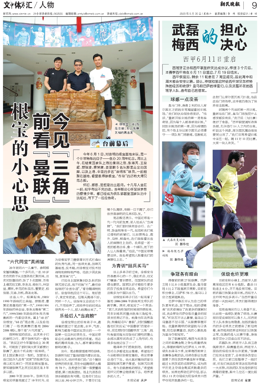 今年6月1日,对崇明的根宝基地来说,是一个非常特殊的日子——创办20周年纪念。周三上午,在结束国家队上海的集训之后,张琳芃、王燊超、颜骏凌、蔡慧康、姜至鹏5名从那里走出的国脚,以及上港、申花的多名“崇明系”球员,一起相聚在基地,看望恩师徐根宝,“作陪”的还有大师兄范志毅。