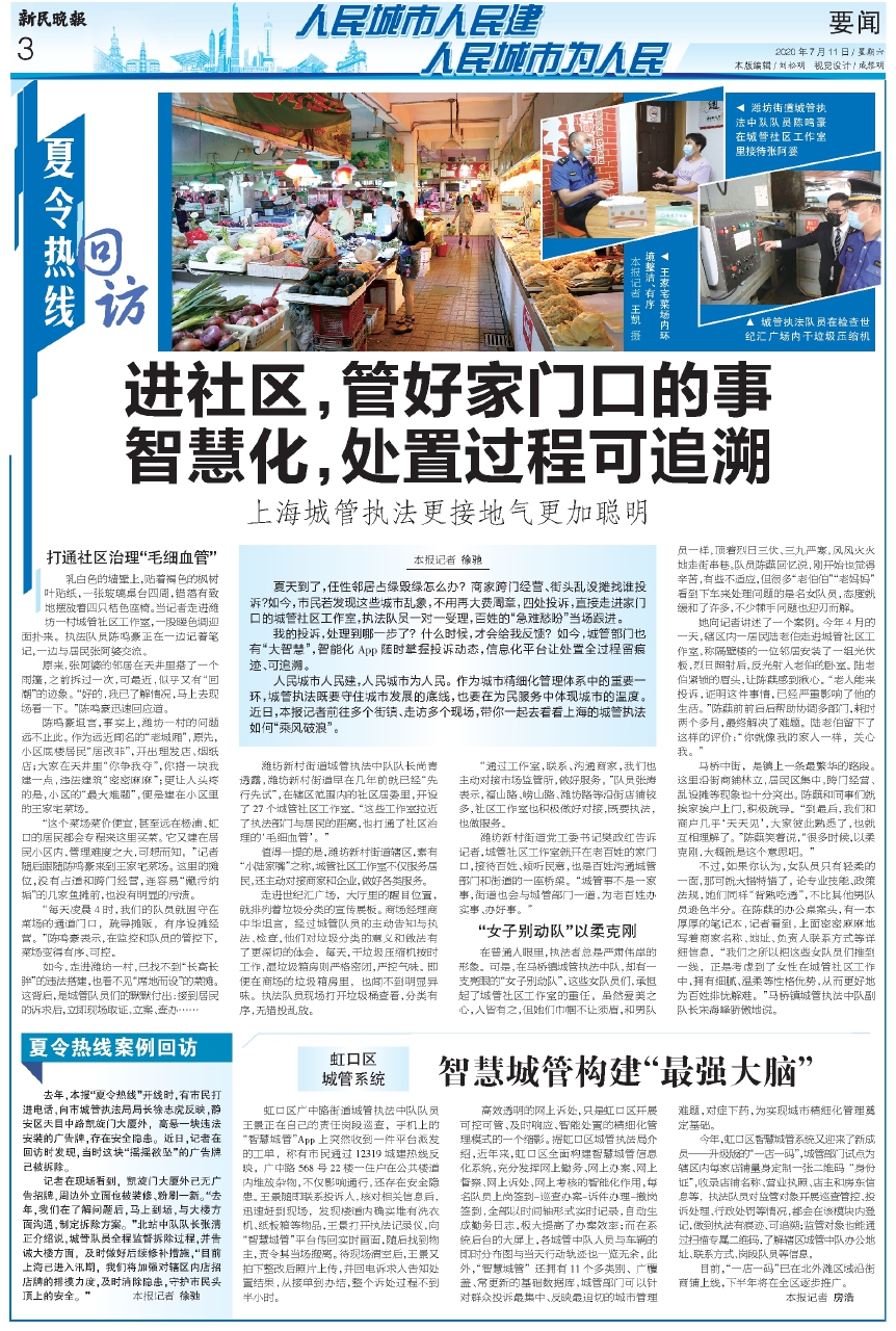 人民城市人民建,人民城市为人民。作为城市精细化管理体系中的重要一环,城管执法既要守住城市发展的底线,也要在为民服务中体现城市的温度。近日,本报记者前往多个街镇、走访多个现场,带你一起去看看上海的城管执法如何“乘风破浪”。