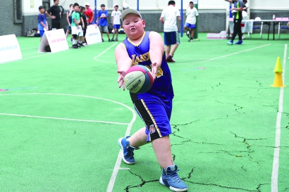 小胖墩参加定点投篮比赛 本版图片 记者 李铭珅 摄