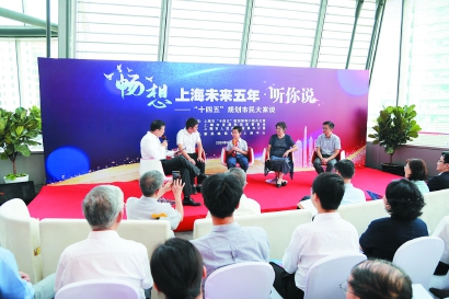 8月28日上午,在“中华第一楼”——上海中心22楼的陆家嘴金融城党群服务中心,“畅想上海未来五年·听你说——‘十四五’规划市民大家谈”活动正在热烈地进行着。窗外,蓝天白云,高楼林立,默默见证着上海这座城市的日新月异;会场内,你来我往、头脑风暴,大家济济一堂,智慧碰撞,共议城市未来,共绘美好蓝图。