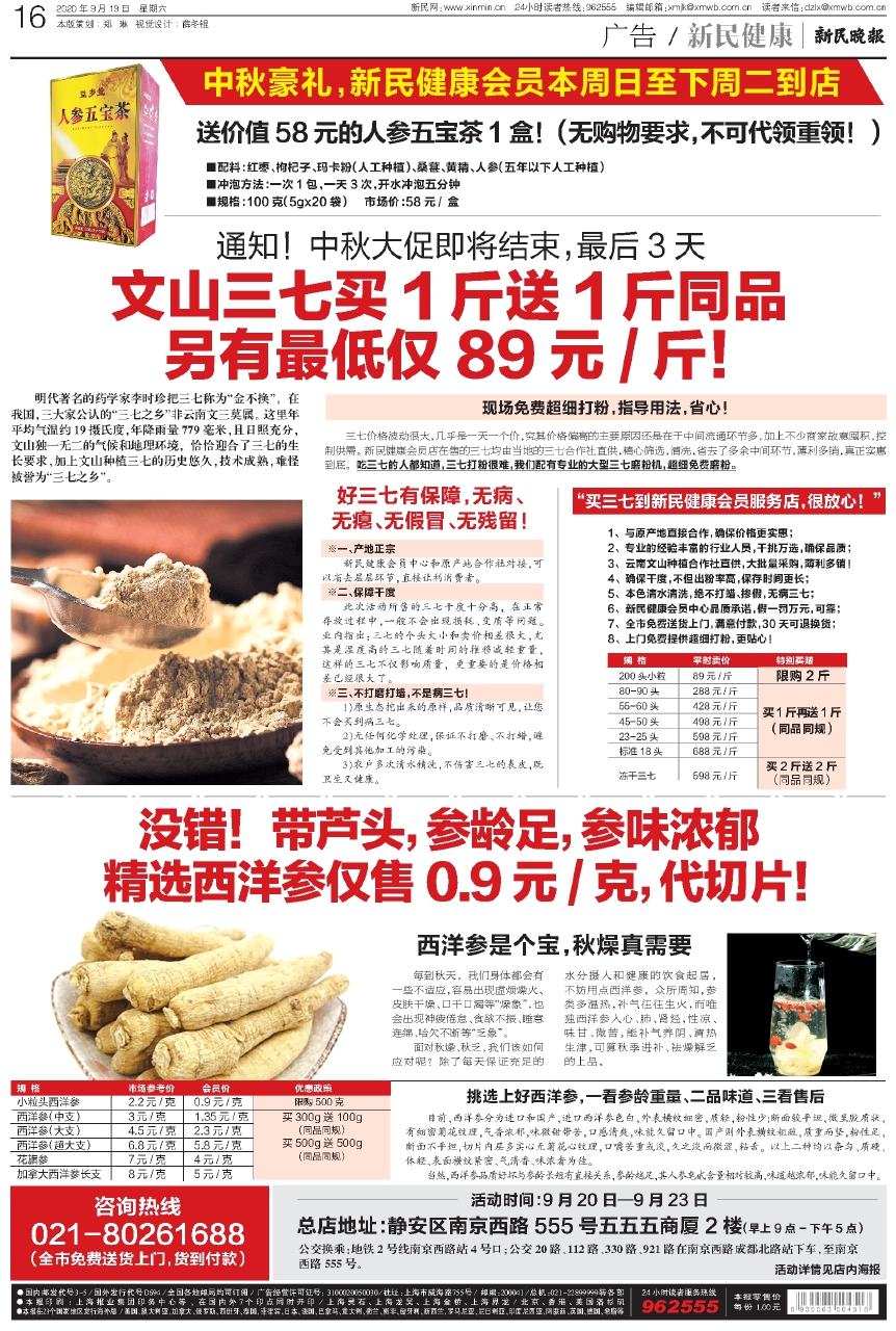 ■配料:红枣、枸杞子、玛卡粉(人工种植)、桑葚、黄精、人参(五年以下人工种植) ■冲泡方法:一次1包,一天3次,开水冲泡五分钟 ■规格:100克(5gx20袋) 市场价:58元/盒
