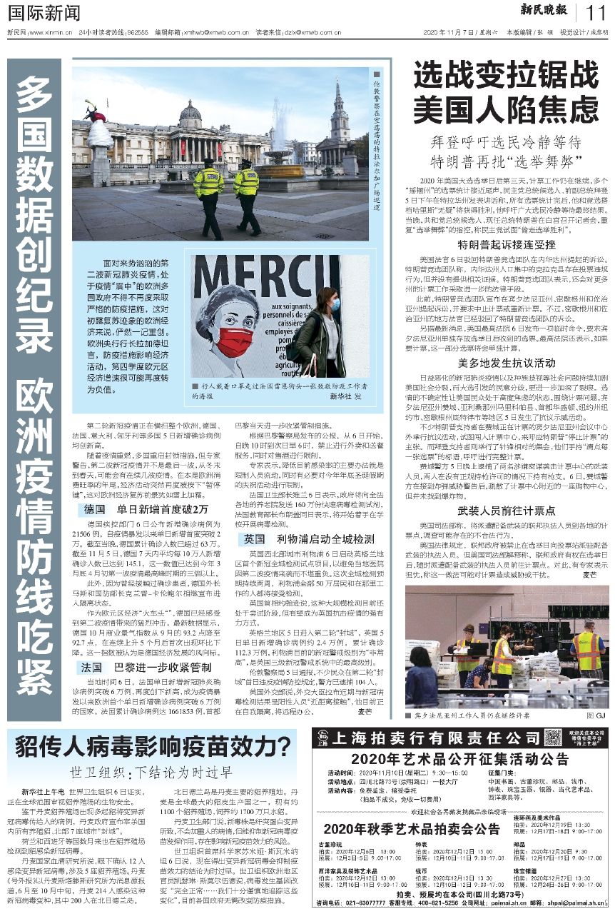 德国疾控部门6日公布新增确诊病例为21506例,自疫情暴发以来单日新增首度突破2万。截至当晚,德国累计确诊人数已超过63万。截至11月5日,德国7天内平均每10万人新增确诊人数已达到145.1,这一数值已达到今年3月底4月初第一波疫情最高峰时期的三倍以上。