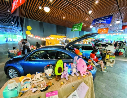 虹桥天地今年国庆期间主办的“100个后备箱主题市集”吸引许多年轻人当“摊主” 本报记者 张龙 摄