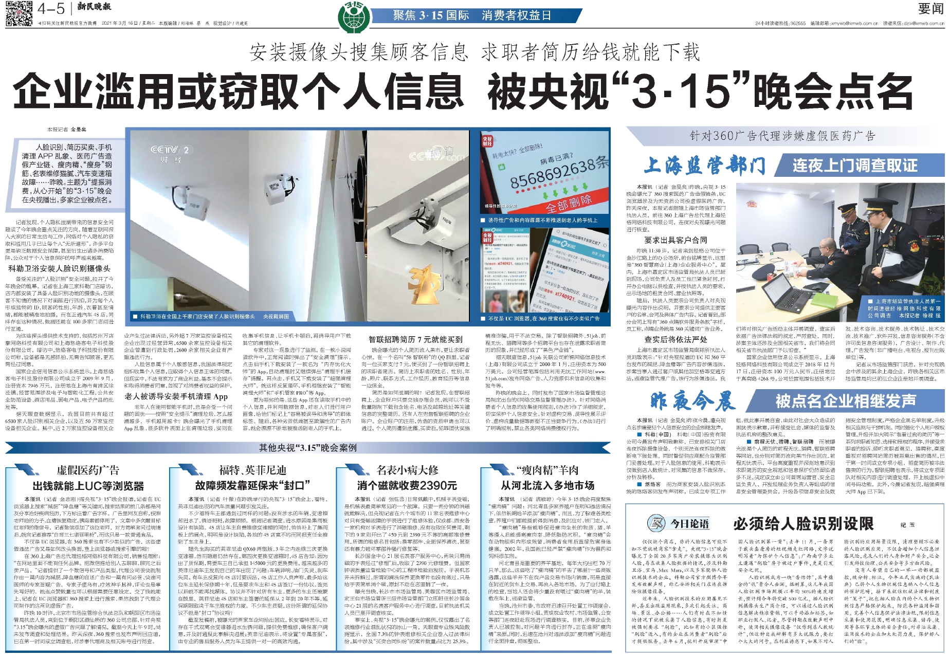 人脸识别、简历买卖、手机清理APP乱象、医药广告造假产业链、瘦肉精、“瘦身”钢筋、名表维修猫腻、汽车变速箱故障……昨晚,主题为“提振消费,从心开始”的“3·15”晚会在央视播出,多家企业被点名。