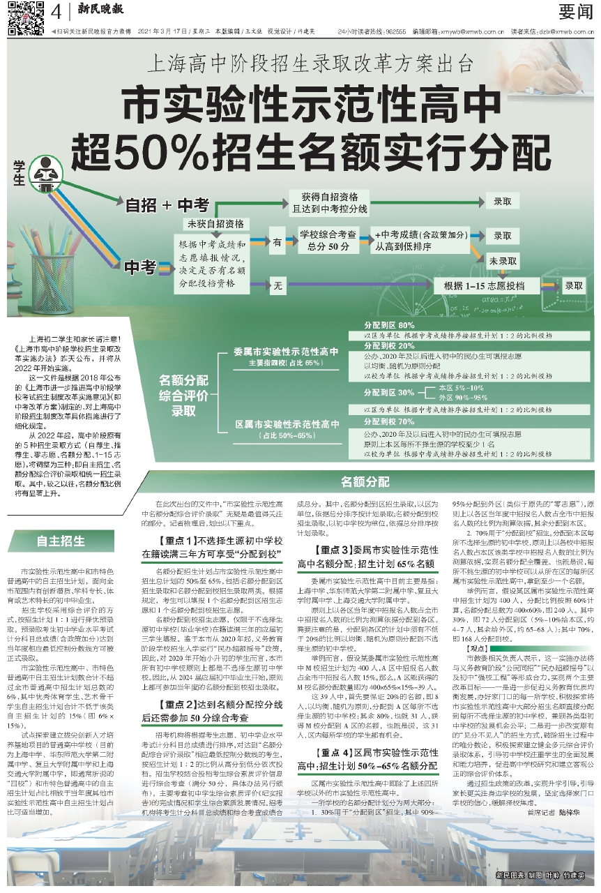 在此次出台的文件中,“市实验性示范性高中名额分配综合评价录取”无疑是最值得关注的部分。记者梳理后,划出以下重点。