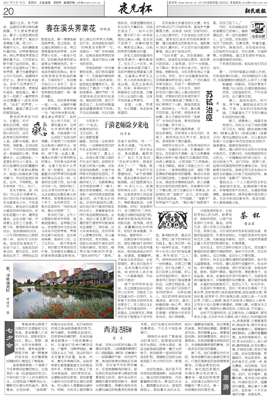 家乡的习俗,正月十五要接灶君老爷回家,做素汤圆请灶。放学路过田头,母亲要我早点回去挑点尚未开花的荠菜。荠菜拌豆腐干或粉丝,放点麻油味精,是很可口的。过了正月半,一般不再食用了,有时要点荠菜如包百叶卷,母亲教我去靠路边的麦根旁或蚕豆根旁找,那儿晚生的荠菜大而嫩,但不多。后来读到东坡的“时绕麦田求野荠”句,深感这一“绕”字用得极好,如果没有挑荠菜的亲身经历,是找不到这么精当的字的。
