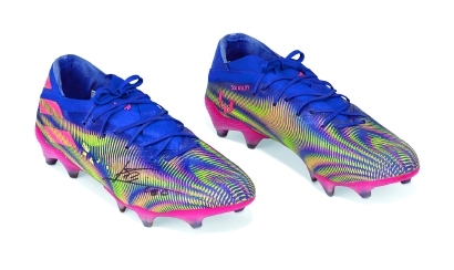在打破了新的世界纪录后,梅西在这双荣誉战靴上签名,并捐赠出来。起初它被展示在加泰罗尼亚国家艺术博物馆,后来,又于2021年4月30日摆上了拍卖台,经过50多轮全球收藏家的竞争以12.5万英镑(折合人民币约112万元)成交。拍卖所得捐给了当地医院为病患儿童谋福利。鞋子的生产者阿迪达斯为拍品出具了证书。