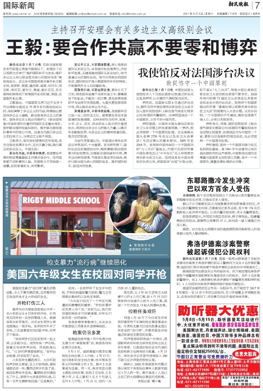 王毅指出,中国国家主席习近平去年9月出席联合国成立75周年系列高级别会议时,深刻阐释了多边主义的内涵,明确指出要坚持多边主义道路。联合国是多边主义的旗帜,坚持多边主义就必须维护以《联合国宪章》宗旨和原则为基石的国际关系基本准则,维护联合国的权威和地位,维护联合国在国际事务中的核心作用。这是当代践行多边主义的应有之义,与单边主义绝不相容。
