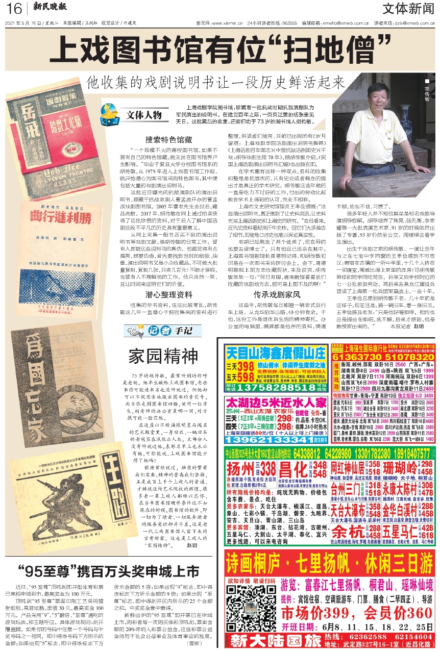 收集的非书资料,往往比较零乱,胡传敏这几年一直潜心于把收集来的资料进行整理,供读者们使用,目前已出版的有《岁月留痕:上海戏剧学院话剧演出说明书集锦》《上海话剧百年图志》《中国抗战话剧图史》《干戏:胡导戏剧生涯70年》,据胡传敏介绍,《民国上海话剧演出说明书汇编》也出版在即。
