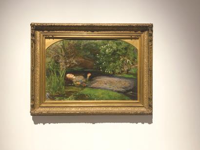 英国泰特美术馆此番拿出100余件珍贵馆藏,身处展厅,恍惚间就像踏入了泰特美术馆的大门。泰特的镇馆之宝之一《奥菲利娅》是拉斐尔前派画家约翰·埃弗里特·米莱在1851年至1852年间所创作的绘画。浦东美术馆为这幅作品的展出特别辟出整整一个展厅。米莱在对《哈姆雷特》中悲惨的女性角色——奥菲莉娅的细腻描绘中,将绚烂灵魅、略带伤感的浪漫情调发挥到极致,那些布满在水边的杂草小花,仿佛使人闻到她散发出芳香的气息,溪水在静静地应着她断断续续的歌唱,好像一点没有感觉到身处险境;她的头发松散,身体上没有紧身衣的束缚,女子如此这般的装束,在维多利亚时代的英国,只有在卧室才会看到。因而,作品在诞生之初曾引发巨大争议。如今,《奥菲利娅》的复制品出现在贺卡、钱包以及手提袋上,无处不在。
