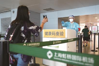 上海虹桥国际机场对所有国内到达旅客在体温检测的基础上进行健康码查验 首席记者 刘歆 摄