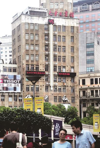 昨天,南京路步行街上的户外温度计乱了套,途经的路人发现,温度计实时显示一会儿是-8℃(见左图),一会儿又跳到摄氏45℃(见右图)、48℃,实在让人看得有点懵!南京路步行街是沪上主要地标商圈,这样的温度计应赶紧修理一下了! 杨建正 摄影报道