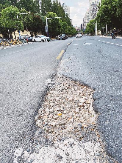 翠钰南路有多处龟裂和坑洼现象 陆常青 摄