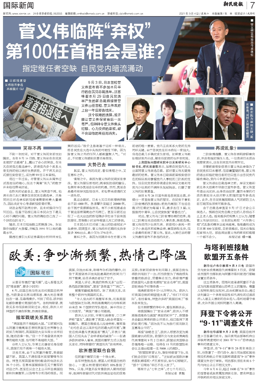 9月3日,日本首相菅义伟宣布将不参加本月举行的自民党总裁选举。这意味着本月29日自民党选举产生的新总裁将接替菅义伟出任首相,菅义伟政府上台一年后即告结束。