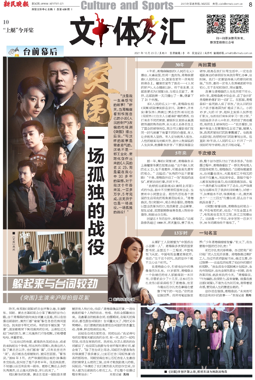 《突围》首播当晚,周梅森也和观众一样,守在电视机前,他说:“书在全国上市了,电视剧也在东方卫视、浙江卫视播出了。这就像一个节日,辛辛苦苦一百多万字,30年的期待终于落地了。”