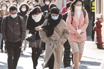 申城气温断崖式下跌,今晨市民换上冬装抵御寒潮 本报记者 李铭珅 摄