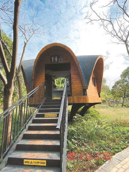“特色厕所”最佳创意设计奖——树屋,位于漕泾郊野公园长堰路北面的树林间