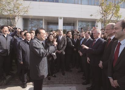 11月22日,李克强在上海外高桥国际智能制造服务产业园与多家外资企业负责人交流 新华社 发