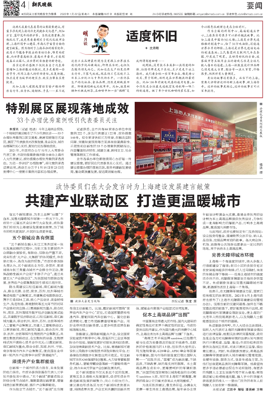 这两天我看代表委员的议案提案建议,有蛮多涉及到上海的历史风貌和文化遗产,例如方言、蓝印花布的保护等。当然这很重要,但相比之下,我更愿意看到关于现代化城市治理、上海科创中心建设、布局元宇宙等方面的建言献策。因为相对于上海承担的国家使命、政府工作报告中提出的目标任务,唯有向前看,向世界最高标准、最高水平看齐,才能创造真正让国人、让世界刮目相看的新奇迹。