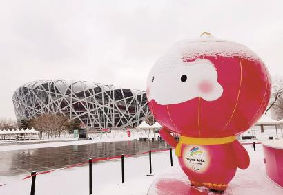 鸟巢旁的倒计时牌已开始显示冬残奥会倒计时