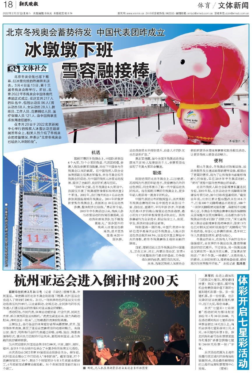 北京冬奥会虽已落下帷幕,但冰雪竞技的热潮并未退去。3月4日至13日,第十三届冬残奥会将举行。昨日,北京2022年冬残奥会中国体育代表团正式成立,在这支共217人的队伍中,包括运动员96人(男运动员68人、女运动员28人),教练员、工作人员、竞赛辅助人员、医疗保障人员121人,由中国残联主席张海迪任团长。
