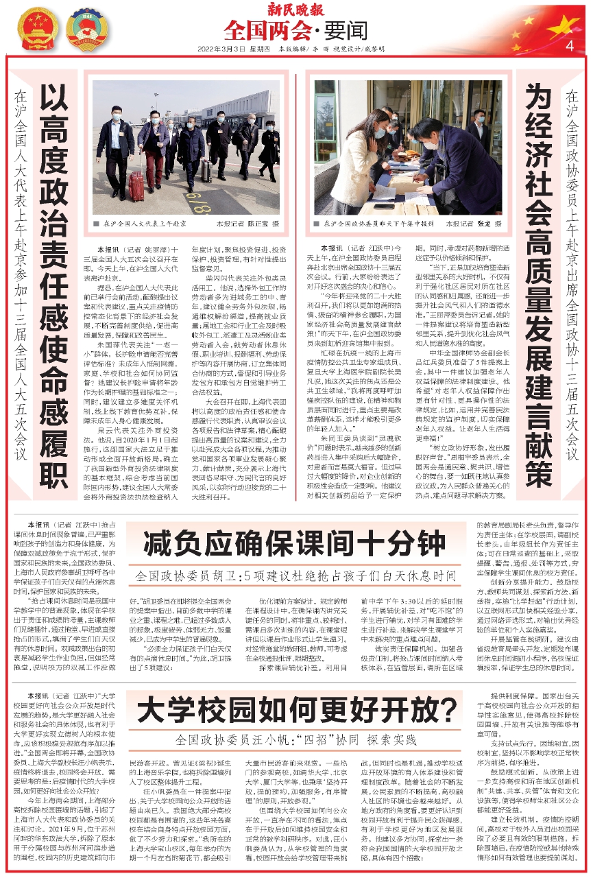 大会召开在即,上海代表团将以高度的政治责任感和使命感履行代表职责,认真审议会议各项报告和法律草案,精心酝酿提出高质量的议案和建议,全力以赴完成大会各项议程,为推动党和国家各项事业发展凝心聚力、献计献策,充分展示上海代表团恪尽职守、为民代言的良好风采,以实际行动迎接党的二十大胜利召开。