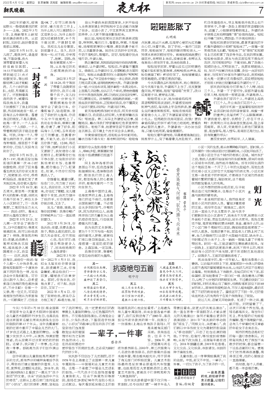 2022年3月30日—2022年4月5日,我和女儿每天给你微信留言,到凌晨两三点,你准备睡前,都会给我们一一回复,嘱咐我们注意安全。那时,你告诉我,你有点累了。对不起,我没忍住,又哭了……