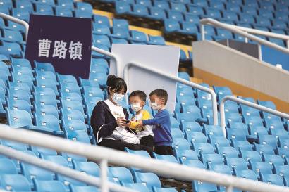 4月22日,记者在源深体育中心看到,这里作为浦东新区康复患者的“中转站”,体育场看台上按街镇划分区域,对应接驳车到达时,工作人员叫号上车 本报记者 萧君玮 孙中钦 陈炅玮 摄