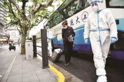 杨浦区大桥街道安排专人与方舱医院或隔离点确认康复患者名单,一路闭环将他们送至居住地。每天至少6个转运班次从清晨忙碌至深夜,确保每一个出院出舱人员“回家无障碍”。本报记者萧君玮 孙中钦 陈炅玮摄影报道