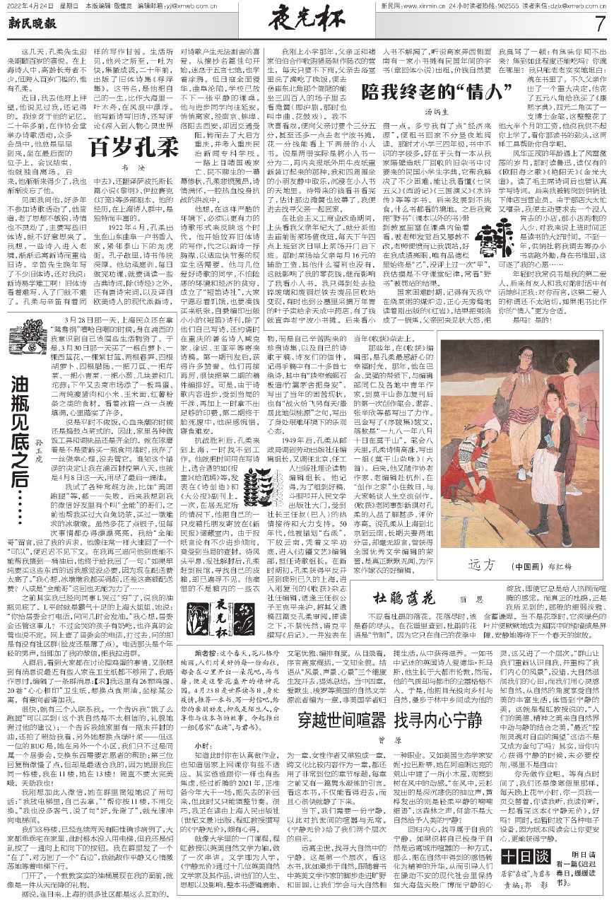 这几天,孔柔先生迎来期颐百岁的喜悦。在上海诗人中,高龄长寿者不少,但跨入百岁门槛的,惟有孔柔。