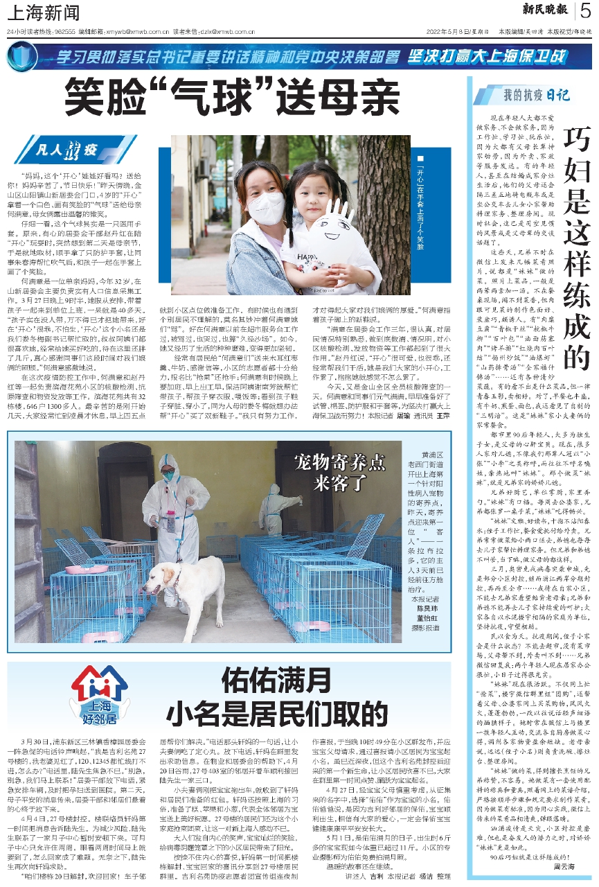“满意在居委会工作三年,很认真,对居民情况特别熟悉,做到底数清、情况明,对小区核酸检测、发放物资等工作都起到了很大作用。”赵丹红说,“开心”很可爱,也很乖,还经常帮我们干活,她是我们大家的小开心,工作累了,抱抱她就感觉不怎么累了。