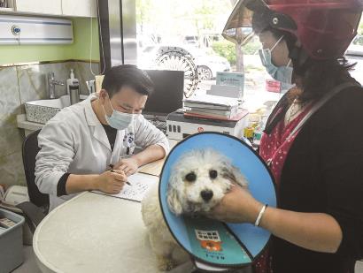宠物狗主人带着狗狗前来问诊 本报记者 陶磊 摄