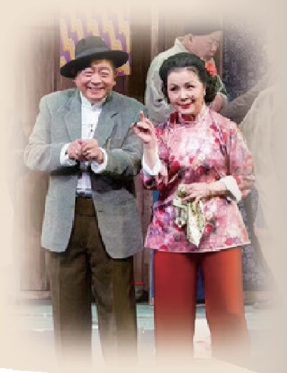 王汝刚(左)与李九松表演独脚戏《爱心》