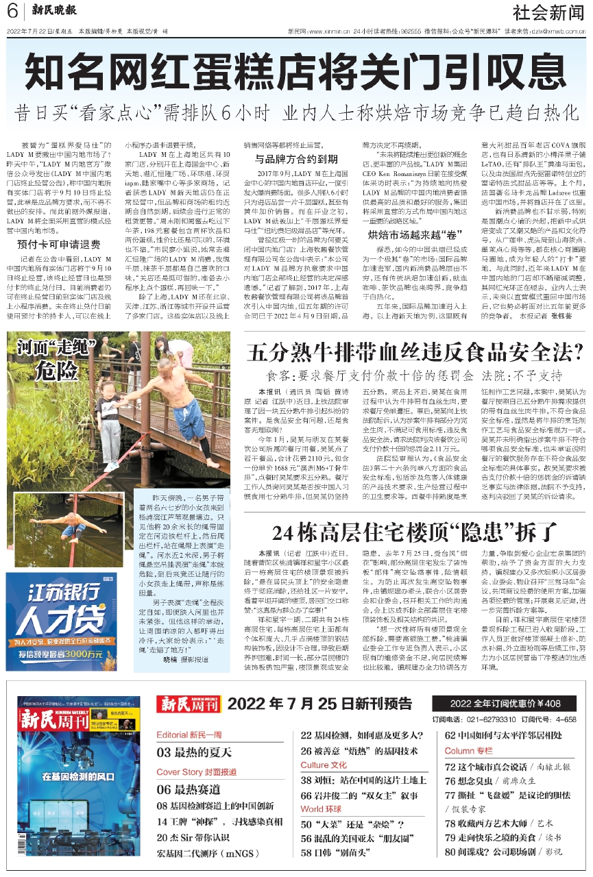 新消费品牌也不甘示弱,特别是国潮点心铺的兴起,把新中式烘焙变成了又潮又酷的产品和文化符号。从广莲申、虎头局到山海茶点、墨茉点心局等等,都在核心商圈跑马圈地,成为年轻人的“打卡”要地。与此同时,近年来LADY M在中国内地的门店却不断缩减调整,其网红光环正在褪去。业内人士表示,未来以直营模式重回中国市场后,它也势必将面对比五年前更多的竞争者。本报记者 张钰芸