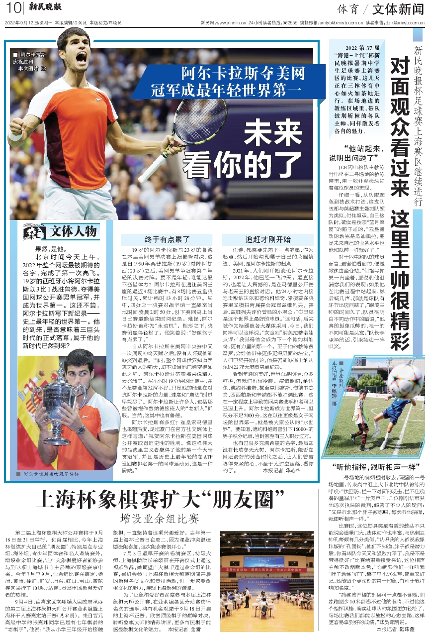 也有过很多充满希望的名字,最后却没有长成参天大树。阿尔卡拉斯,能否在网坛最好的黄金时代之后,让人们曾被填得充盈的心,不至于太过空落落,看你的了。 本报记者 华心怡