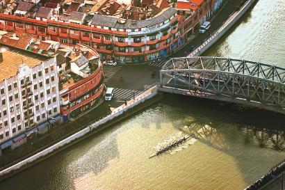 选手们划桨穿越苏州河一座座桥,一个个弯 杨建正 摄