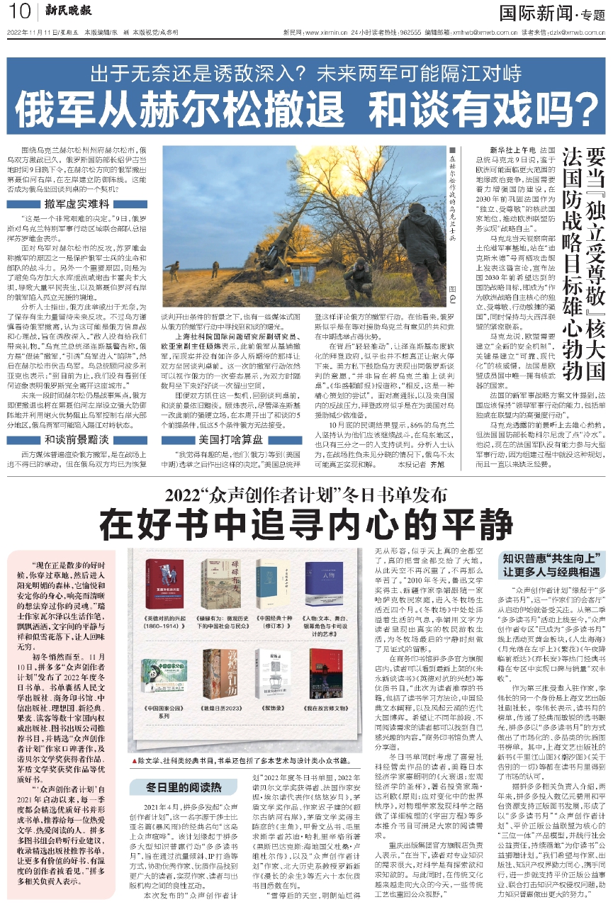 围绕乌克兰赫尔松州州府赫尔松市,俄乌双方激战已久。俄罗斯国防部长绍伊古当地时间9日晚下令,在赫尔松方向的俄军撤出第聂伯河右岸,在左岸建立防御阵线。这能否成为俄乌坐回谈判桌的一个契机?