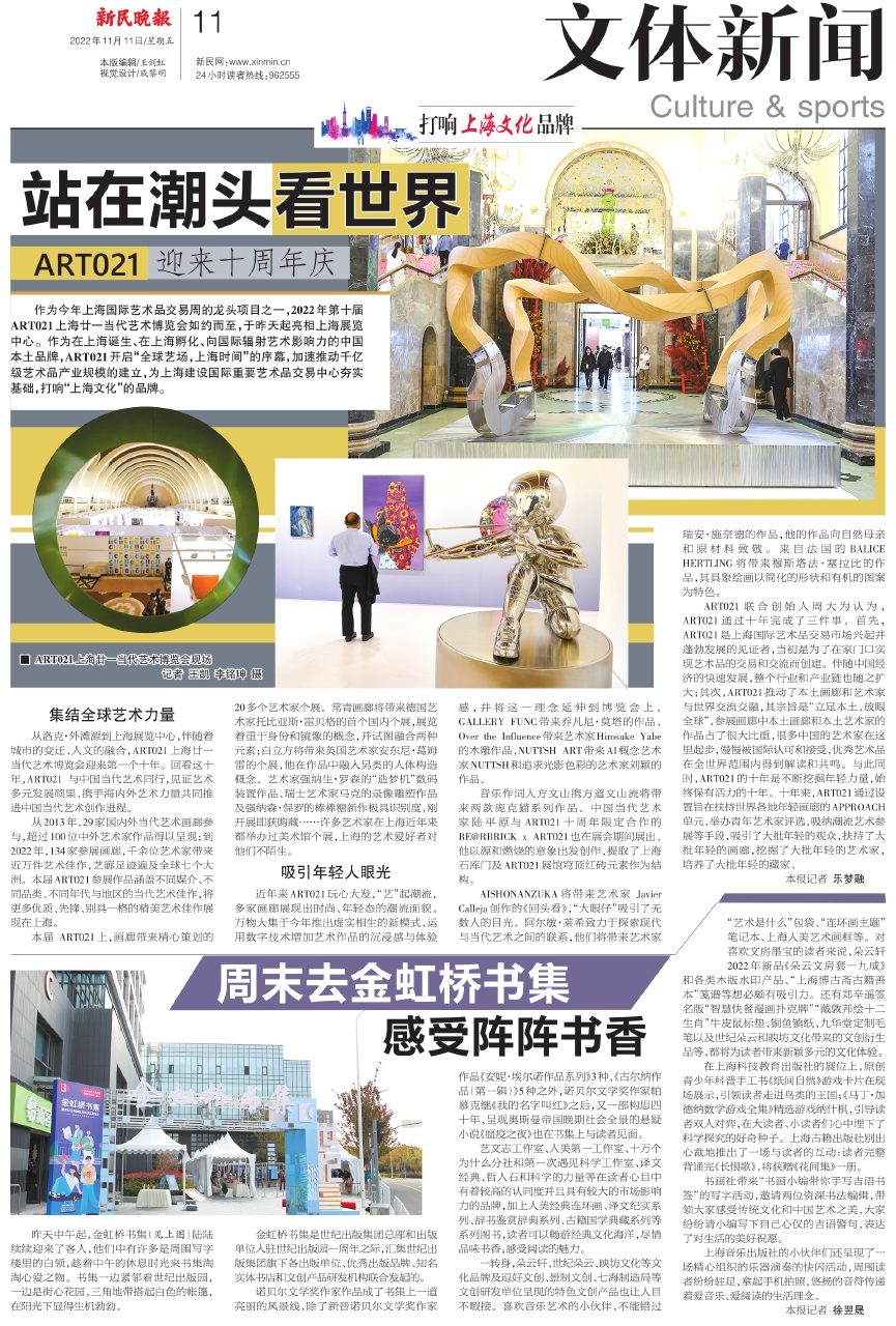 作为今年上海国际艺术品交易周的龙头项目之一,2022年第十届ART021上海廿一当代艺术博览会如约而至,于昨天起亮相上海展览中心。作为在上海诞生、在上海孵化、向国际辐射艺术影响力的中国本土品牌,ART021开启“全球艺场,上海时间”的序幕,加速推动千亿级艺术品产业规模的建立,为上海建设国际重要艺术品交易中心夯实基础,打响“上海文化”的品牌。