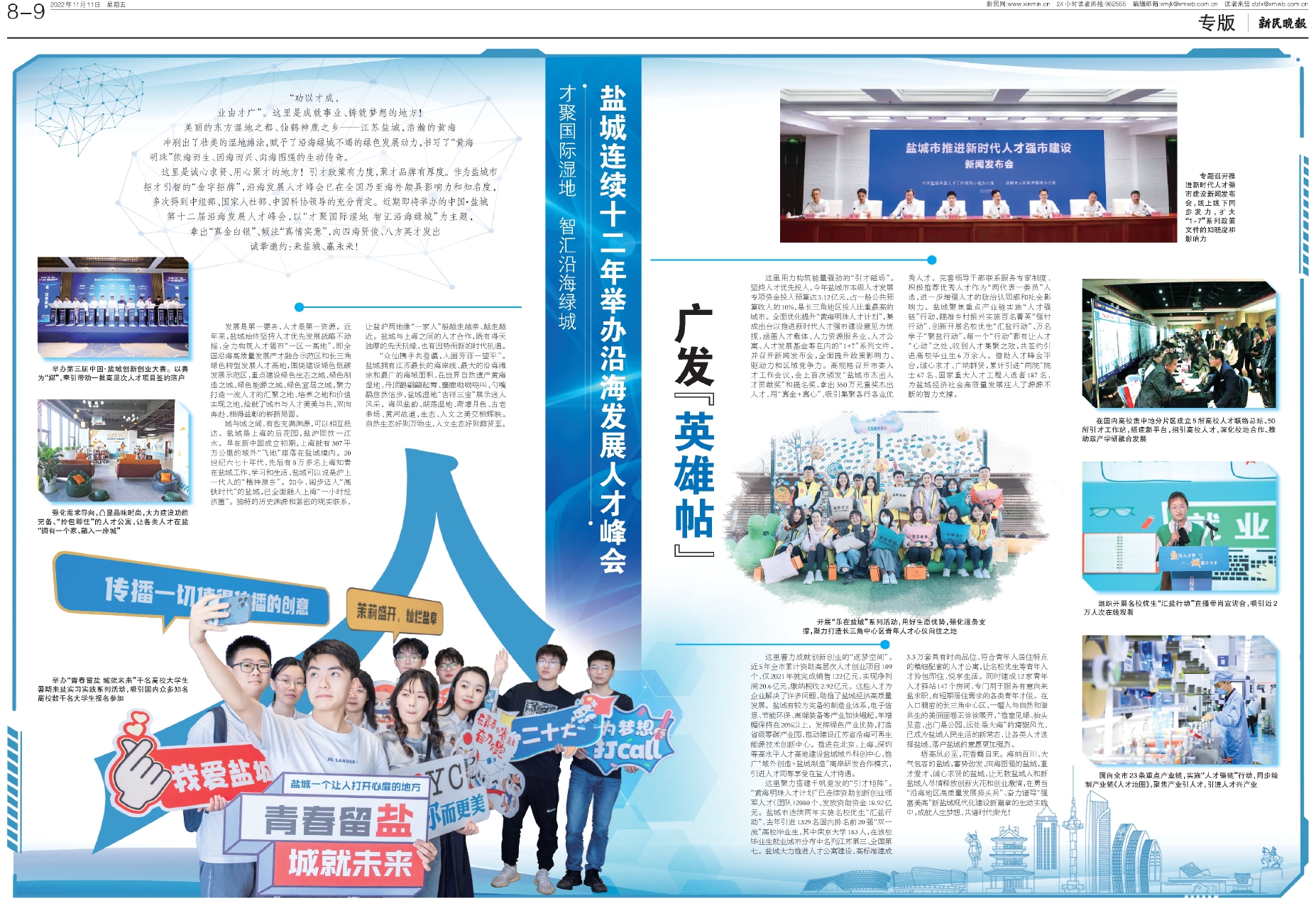 开展“乐在盐城”系列活动,用好生态优势,强化服务支撑,聚力打造长三角中心区青年人才心仪向往之地