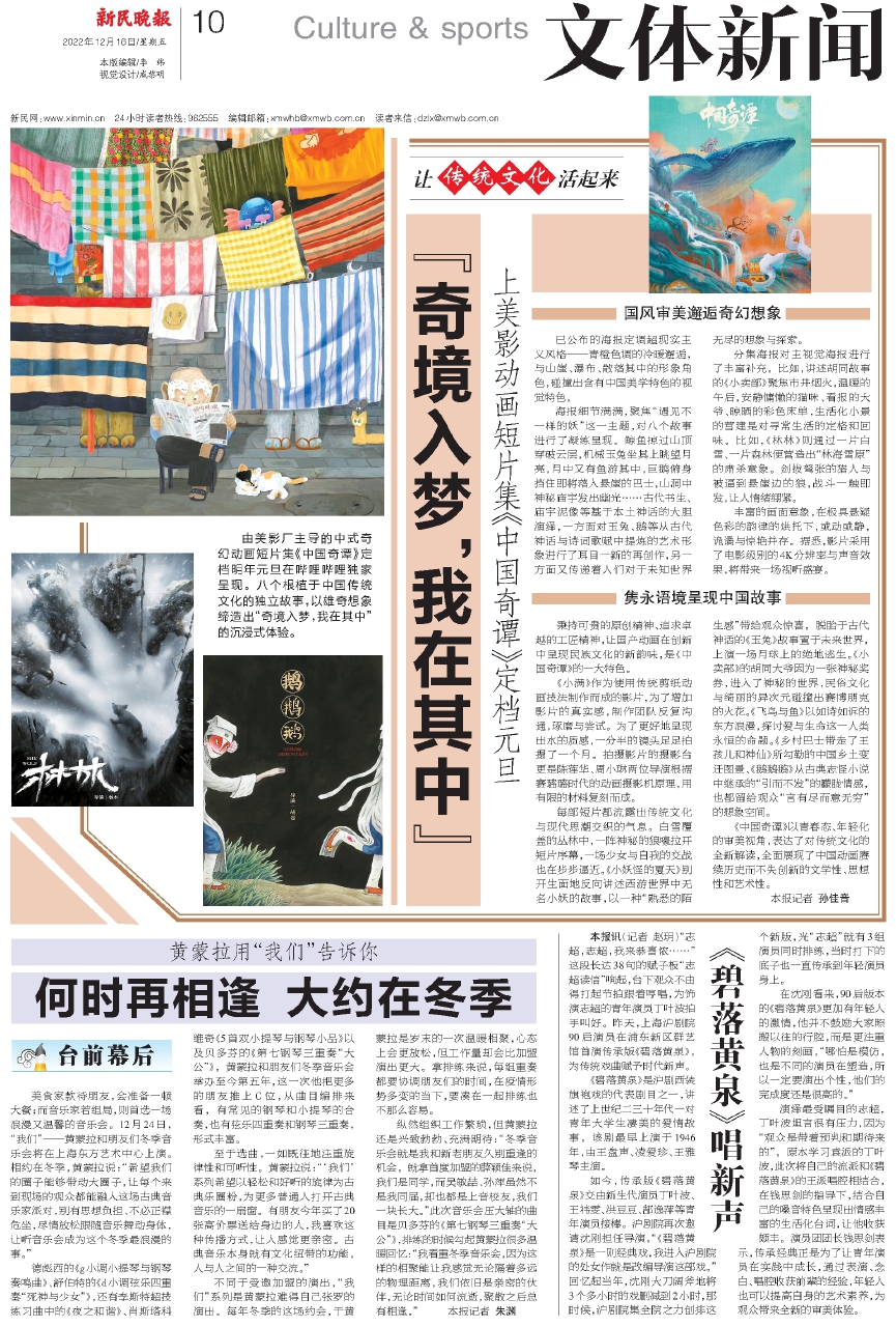 《中国奇谭》以青春态、年轻化的审美视角,表达了对传统文化的全新解读,全面展现了中国动画赓续历史而不失创新的文学性、思想性和艺术性。本报记者 孙佳音