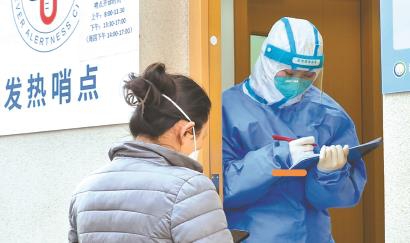 江宁路街道社区卫生服务中心将普通患者与新冠患者分区诊治,把新设立的新冠门诊独立于普通门诊之外,专门接诊发热患者和新冠阳性感染者 本报记者 刘歆 摄影报道