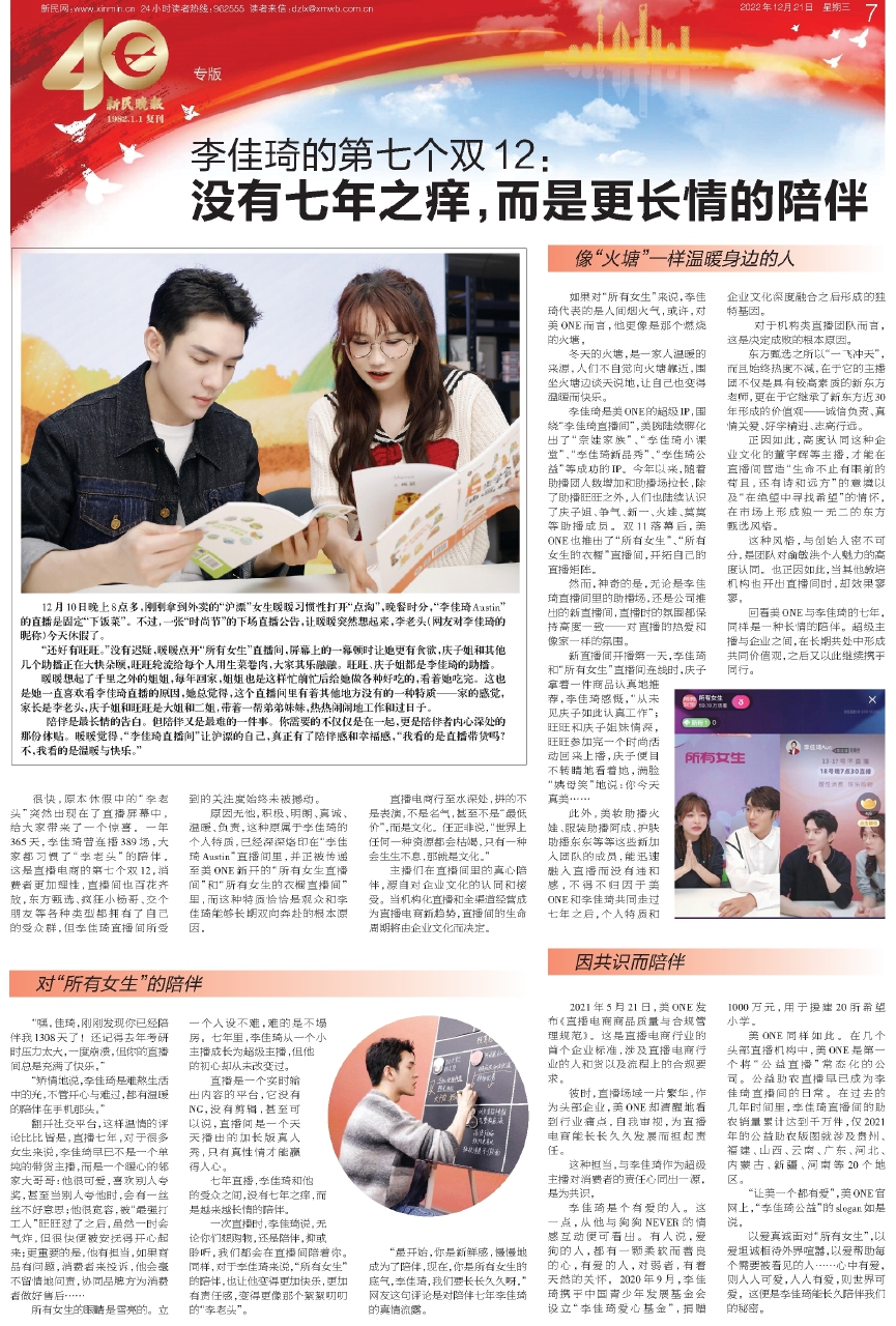 回看美ONE与李佳琦的七年,同样是一种长情的陪伴。超级主播与企业之间,在长期共处中形成共同价值观,之后又以此继续携手同行。