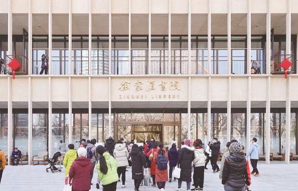 新春伊始,来开放不久的“徐家汇书院”走走看看读读。年初五早晨的阳光里,徐家汇书院门口24小时座位上就有不少读者等待开启一天的书香之旅。书院实行预约制,天气寒冷,队伍不长,有序而安静。其中有20名读者预约了今天的“海派城市考古”之旅,今天的路线是从徐家汇书院一路步行到不远处的百代小楼。