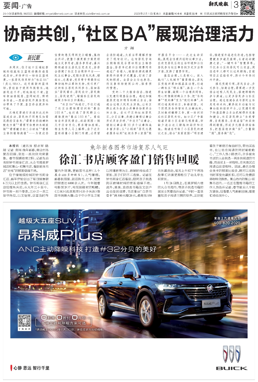 党的二十大报告指出,推进以党建引领基层治理。通过加强基层党组织领导的群众自治,推进全过程人民民主实践,让社区群众成为各类公共事务协商共治的主体。在长宁区的虹旭居民区,分区议事、共建议事等议事会形式灵活多样,“半边天”议事会、楼组议事会等30多个议事阵地丰富多彩:从“小蚂蚁”居民志愿者服务站到“虹旭乐享e家园”数字服务平台……一次次生动实践,展现出协商共创的议事方法,在改变居民区的生活环境和以往居民参与社区事务的方式方法等方面,发挥了重要作用。