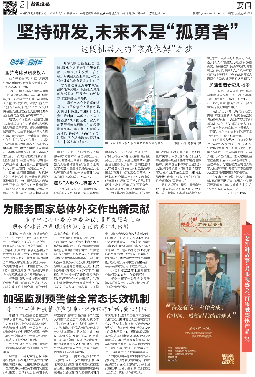 上海机器人企业达闼的选择,依旧是全情投入服务机器人的研制领域,与国际巨头抢赛道抢时间。从成立之初立下的愿景“做出能走进千家万户的家庭保姆级机器人”,到疫情期间服务机器人有了广阔的应用场景,再到当下后疫情时代,达闼的初心从未改变,持续在人形机器人赛道加码。