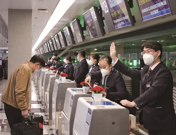 图为今天早上,虹桥机场赴港旅客开始值机