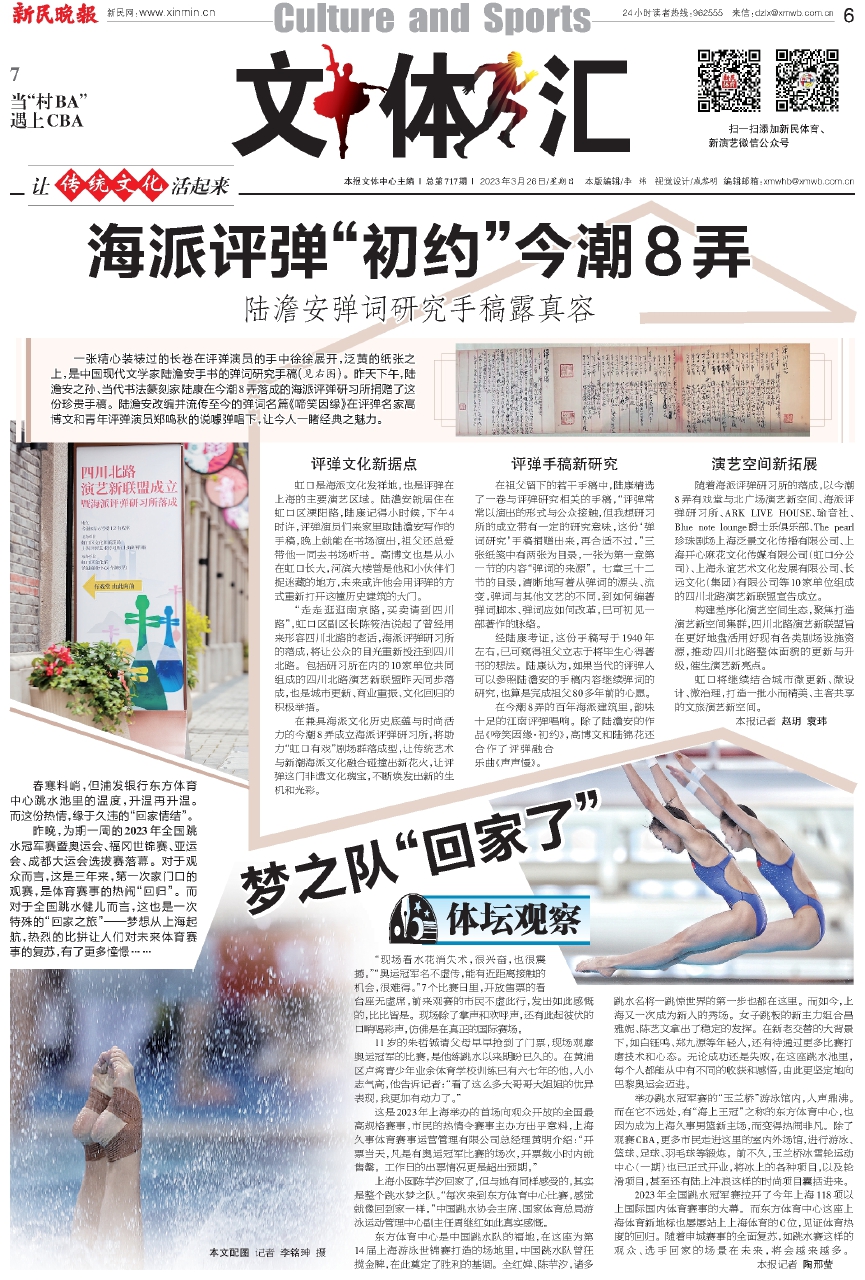 在兼具海派文化历史底蕴与时尚活力的今潮8弄成立海派评弹研习所,将助力“虹口有戏”剧场群落成型,让传统艺术与新潮海派文化融合碰撞出新花火,让评弹这门非遗文化瑰宝,不断焕发出新的生机和光彩。
