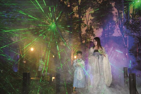 奉贤九棵树ORIENS LUMINA焕光森林推出穿汉服夜游活动 本报记者 徐程 摄